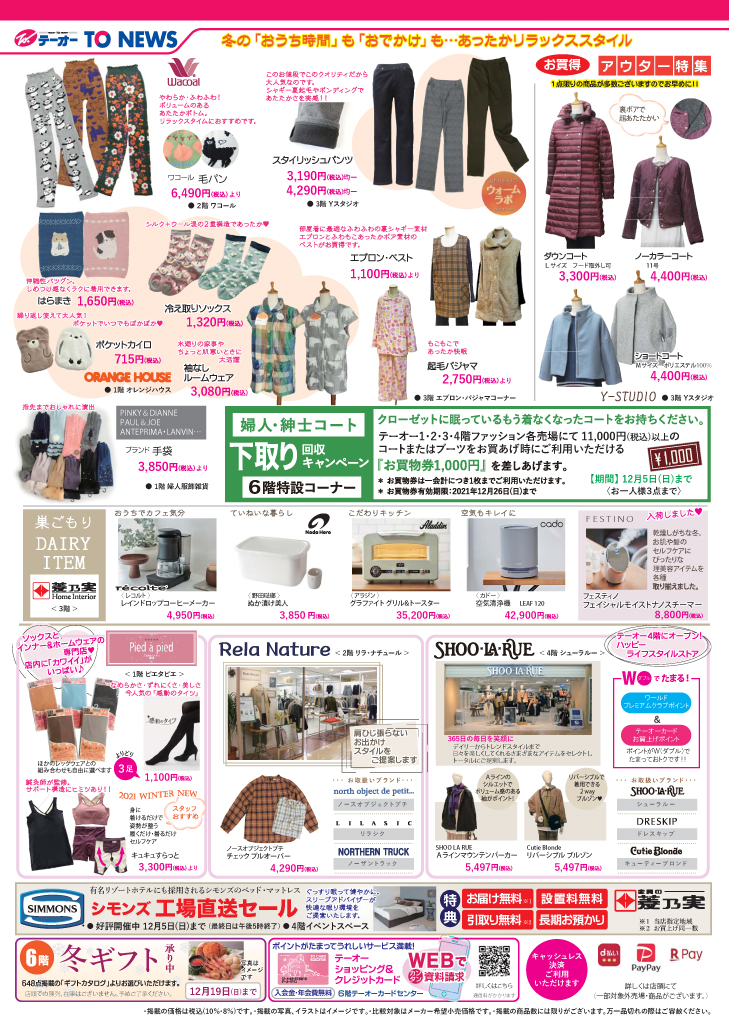 各階ではぬくぬく、あったかリラックス「冬のおうち時間」も「おでかけ」も...あったかリラックススタイルをご提案。