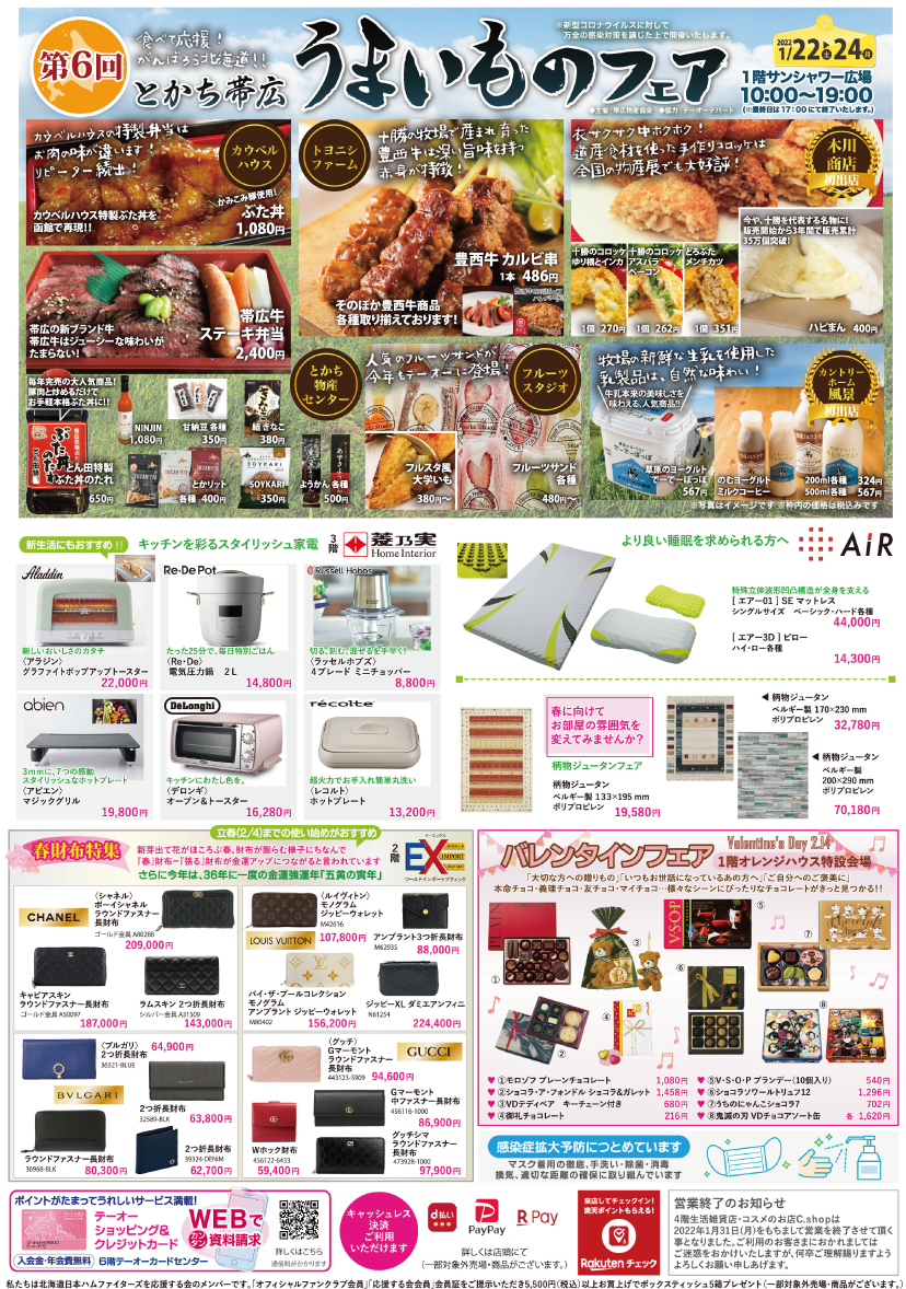 冬物最終売りつくし【同時開催】ワコール・ウイングセール★とかち帯広うまいものフェア★