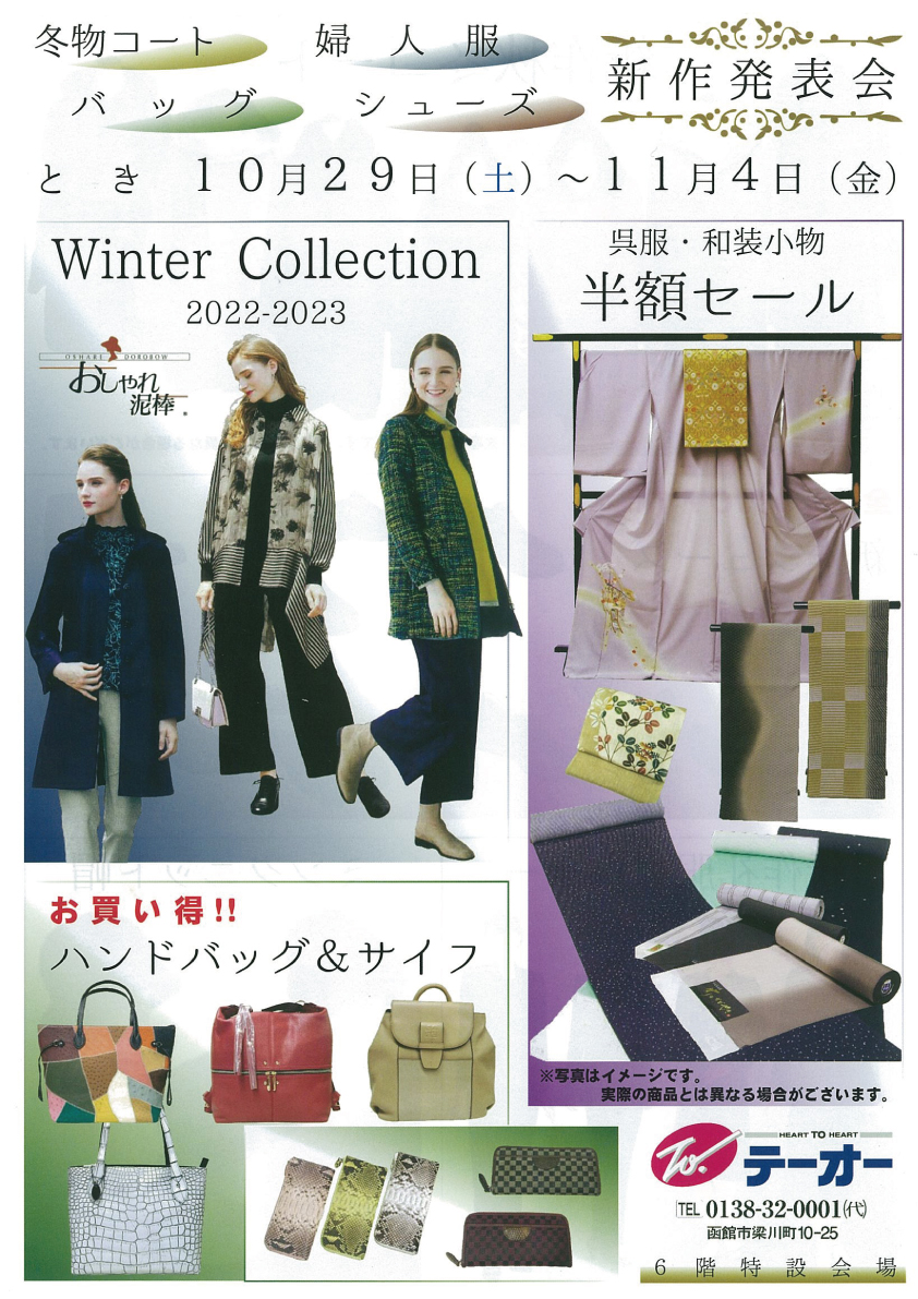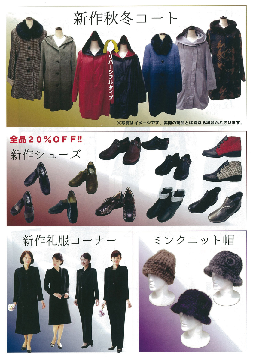 「冬物コート 婦人服 バッグ シューズ 新作発表会 超特価セール」